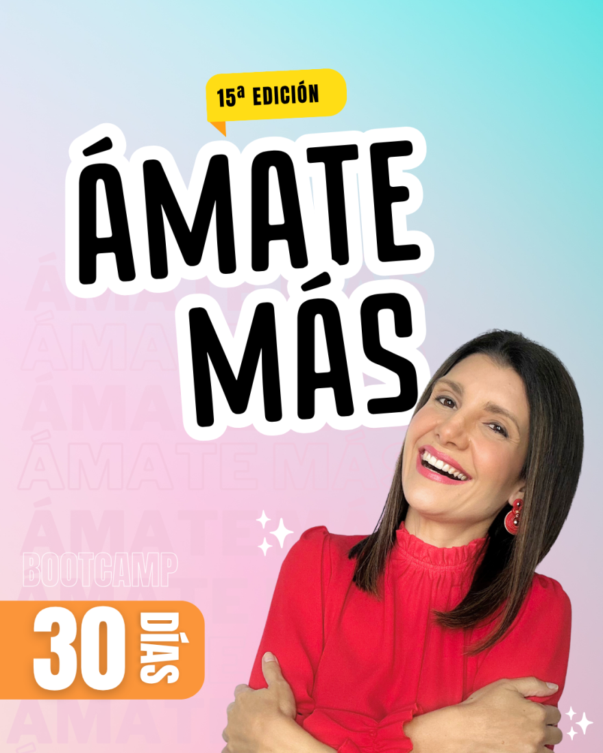 Ámate Más es un proceso de acompañamiento de 30 días, 1 reto de sanación para cada día que te permite avanzar en tu proceso personal de identificación y trabajo terapeútico de tus traumas, miedos, situaciones emocionales por sanar.